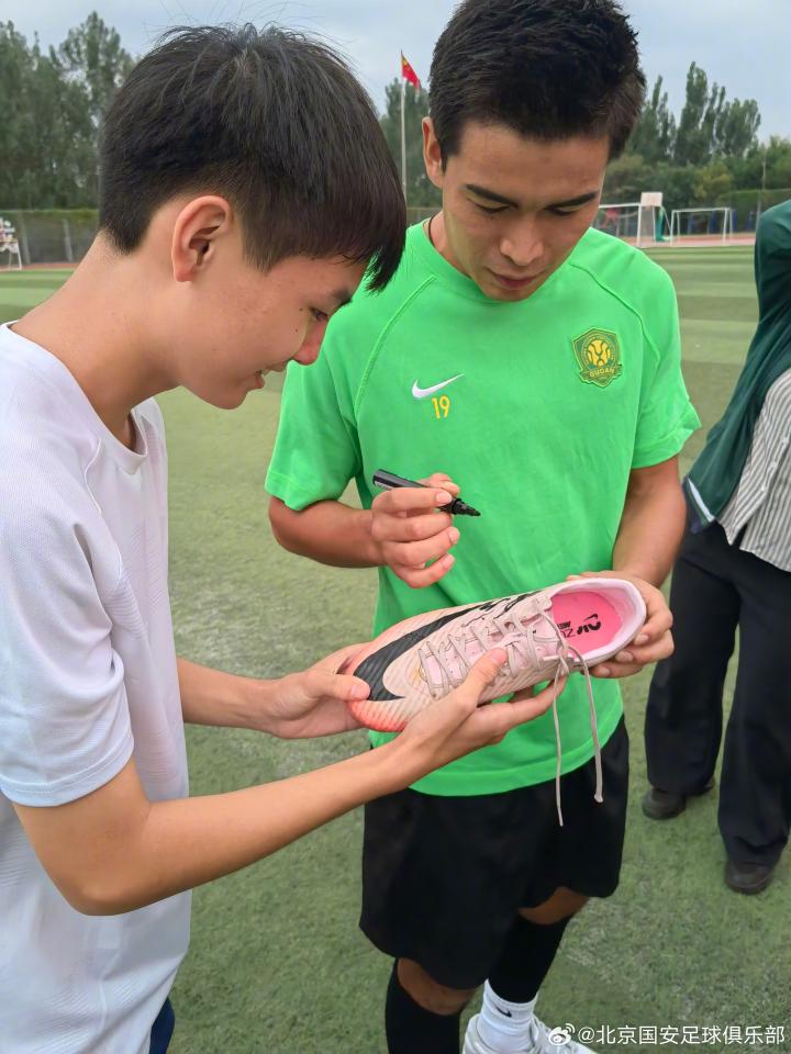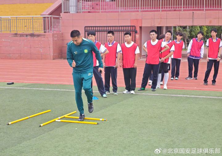 9月15日,来自北京国安足球俱乐部的官方消息,今天北京国安走进建大附中,给学生们带来一堂足球公益体验课,一线队球员乃比江和李睿跃参加本次公益活动。