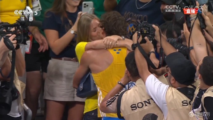 和巴黎奥运会打破世界纪录后一样,杜普兰蒂斯跑到场边亲吻女友。