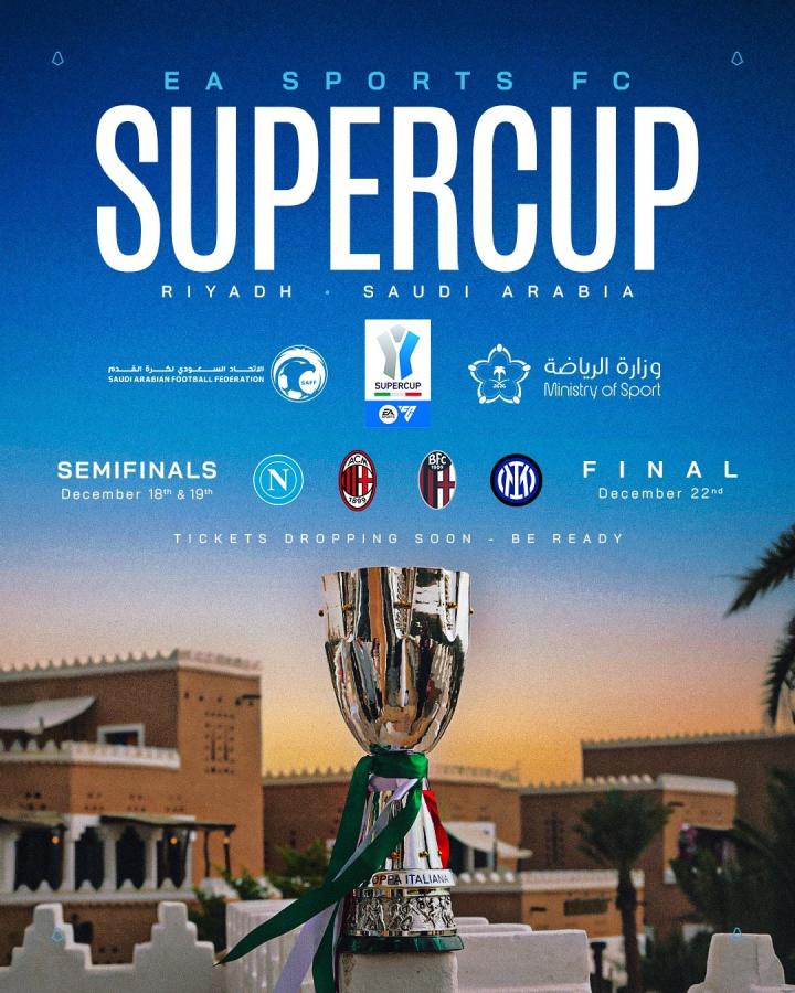 官方:本赛季意大利超级杯12月18日至22日在利雅得举行