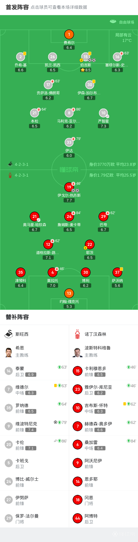 第68分钟,严智星开出角球,伯吉斯头槌破门,斯旺西1-2