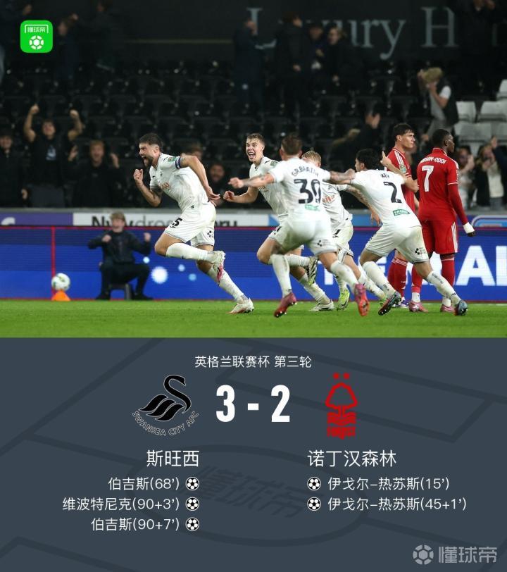 让二追三+绝杀!英联杯斯旺西3-2森林晋级,伯吉斯双响