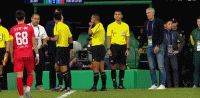 第84分钟,裁判聚集在场边,比赛暂时中断