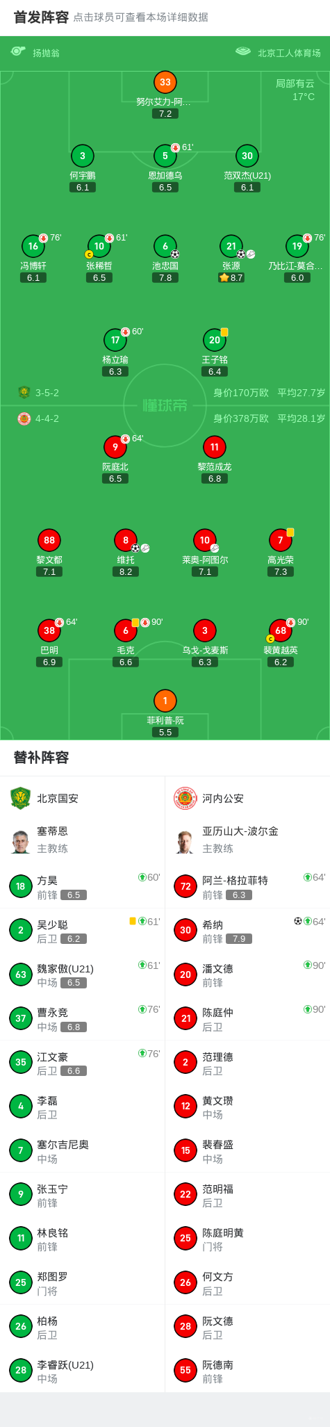 第61分钟,国安换3人,吴少聪、方昊、魏家傲替补出场