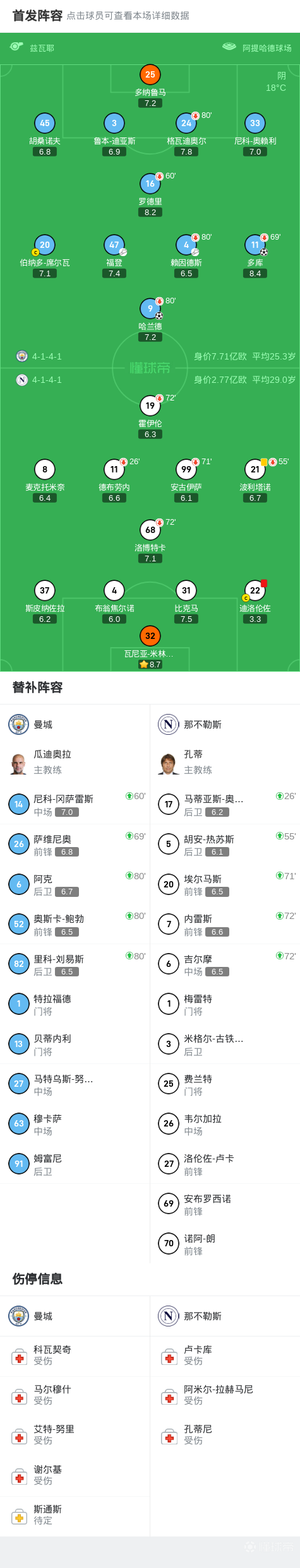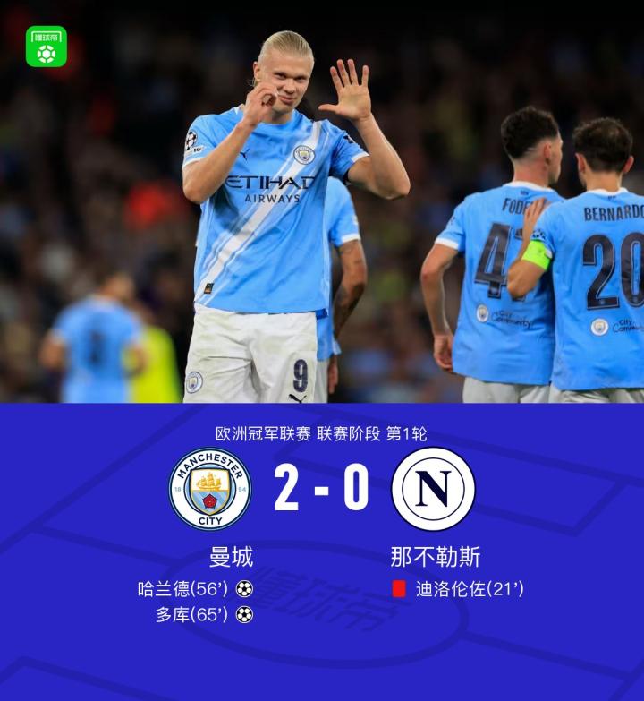 曼城2-0那不勒斯,哈兰德建功,多库丝滑破门,迪洛伦佐染红