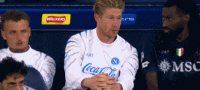 第89分钟,镜头给到场边,德布劳内替补席和安古伊萨进行交谈