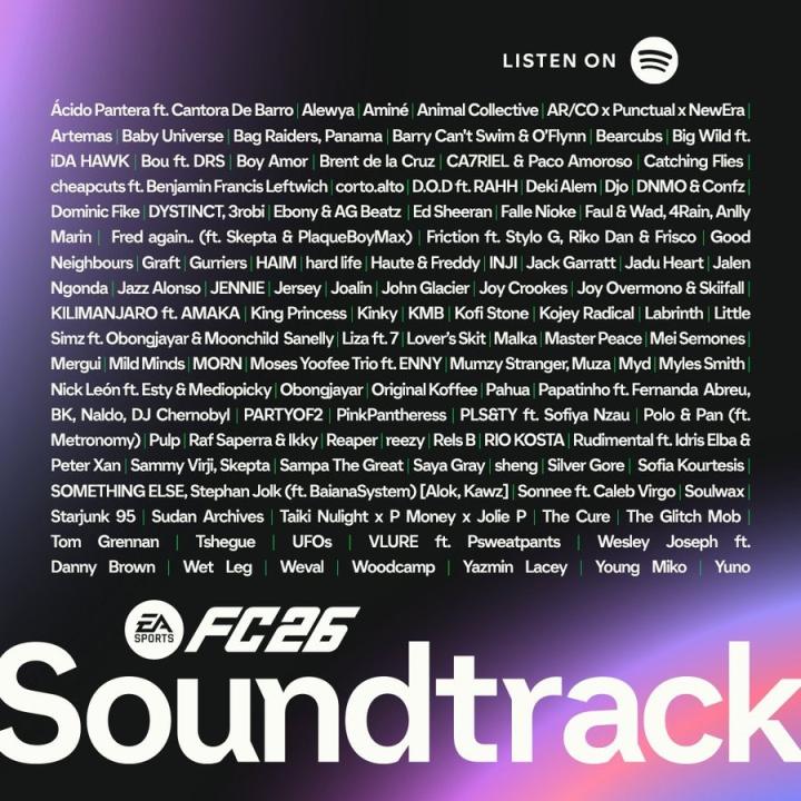 EA官方公布了游戏《FC26》中的音乐,其中,金珍妮、黄老板领衔。