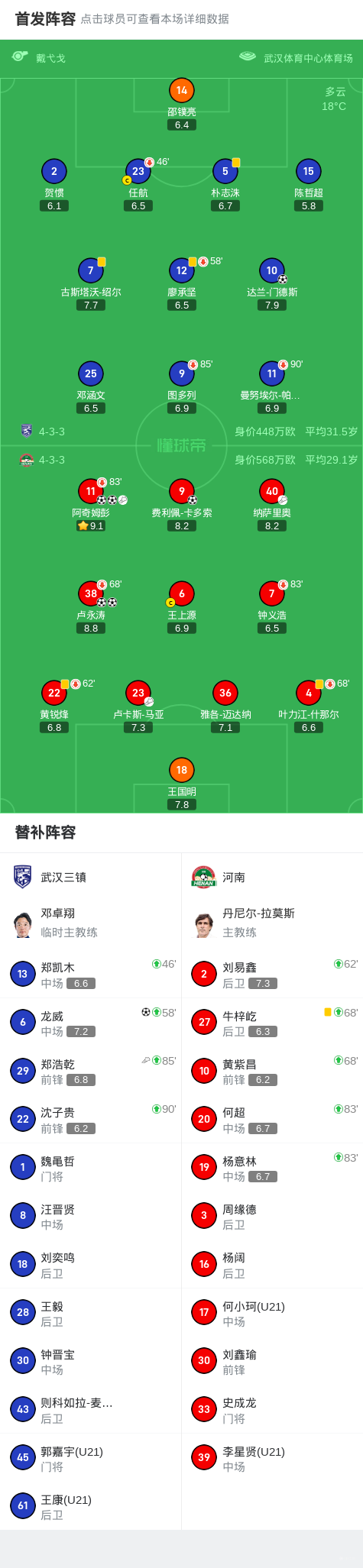 河南5-2三镇,卢永涛、阿奇姆彭双响,卡多索破门
