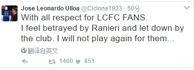 (由于缺少上场时间和转会受到干预,愤怒的乌略亚在社交媒体上公开指责拉涅利)