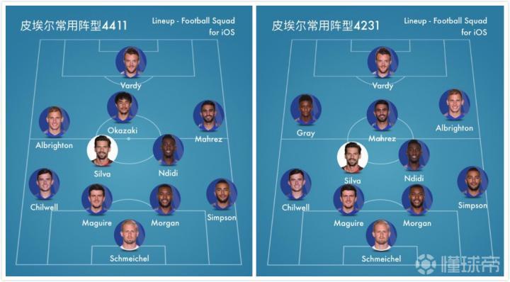 (皮埃尔在莱斯特城的常用阵型4411和4231)
