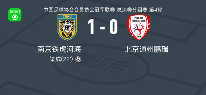 南京铁虎河海1-0北京通州鹏瑞,渠成制胜球战报bot @懂球帝2025-09-20 16:56北京时间9月20日,中国足球协会会员协会冠军联赛总决赛分组赛第4轮,南京铁虎河海在主场迎战北京通州鹏瑞。比赛中,南京铁虎河海球员渠成攻入全场唯一进球,帮助球队取得领先。凭借这一进球,南京铁虎河海最终以1-0战胜对手,全取三分。点击查看本场比赛详细数据>>点击查看中冠完整积分榜>>精彩瞬间第22分钟,南京铁虎河海球员渠成打入一球。展开更多