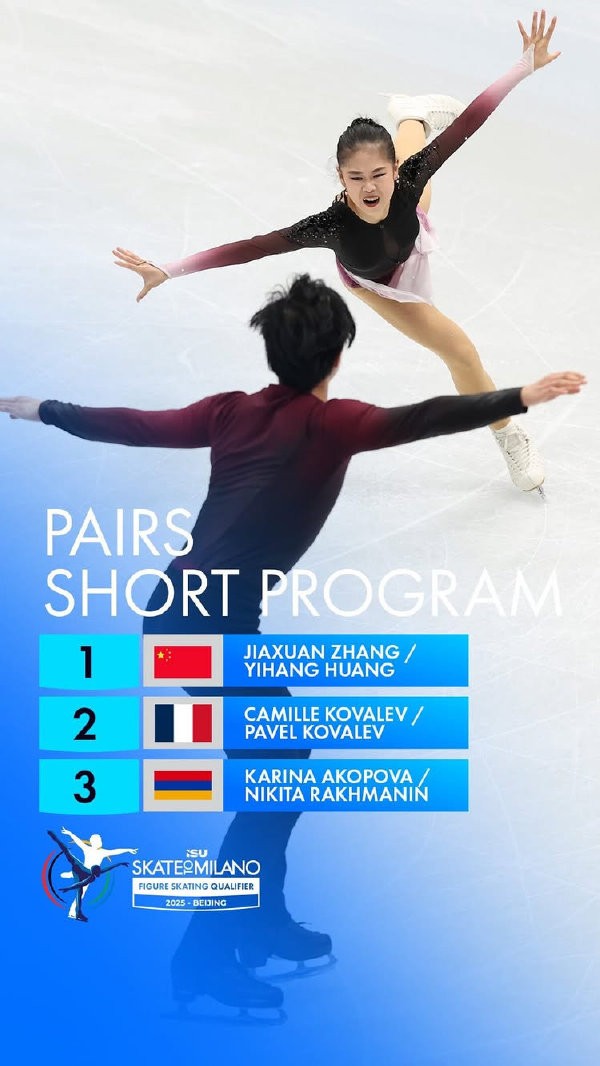 最终,中国、亚美尼亚、日本在本次资格赛获得一张通往奥运会双人滑赛场的入场券。