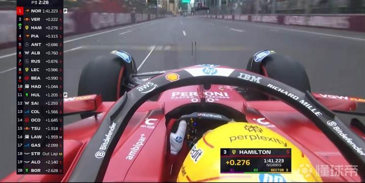 维斯塔潘&汉密尔顿先后冲线后分列二三,他们和诺里斯的差距在0.3秒以内;