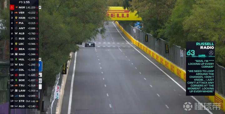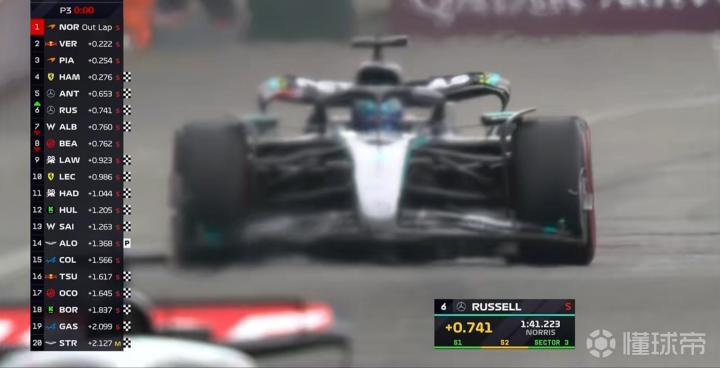 三练停表,诺里斯拿下全场最快,两台梅赛德斯排在第5&第6,勒克莱尔排在第10;