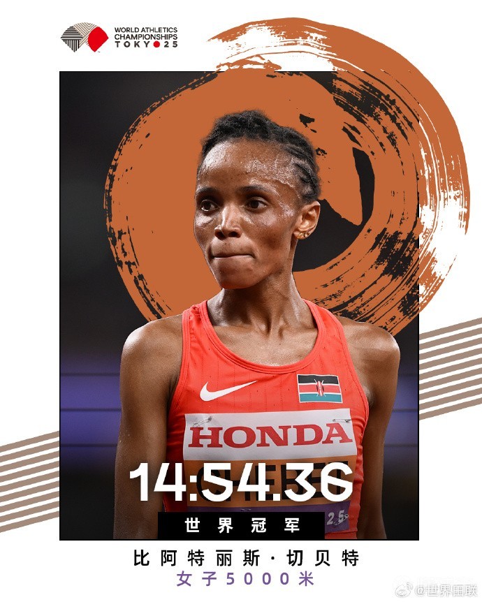 9月20日,2025年东京田径世锦赛女子5000米决赛,最后一圈又是三人决战,最终万米冠军切贝特再现无解冲刺,14分54秒36获得金牌,成为14年来首位包揽世锦赛女子5000米和10000米金牌的选手。