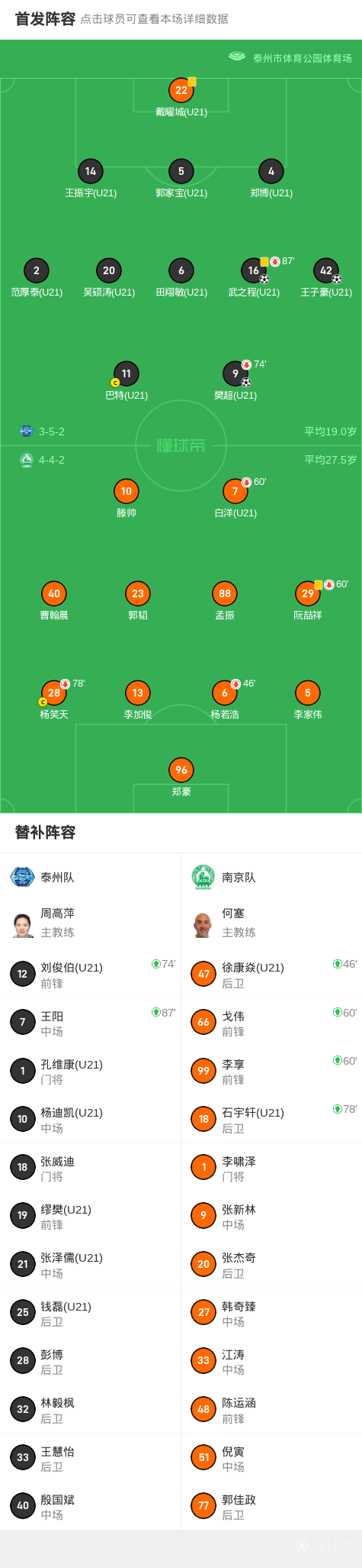 第41分钟,樊超禁区前兜射破门,泰州队2-0南京队