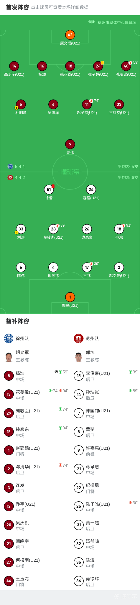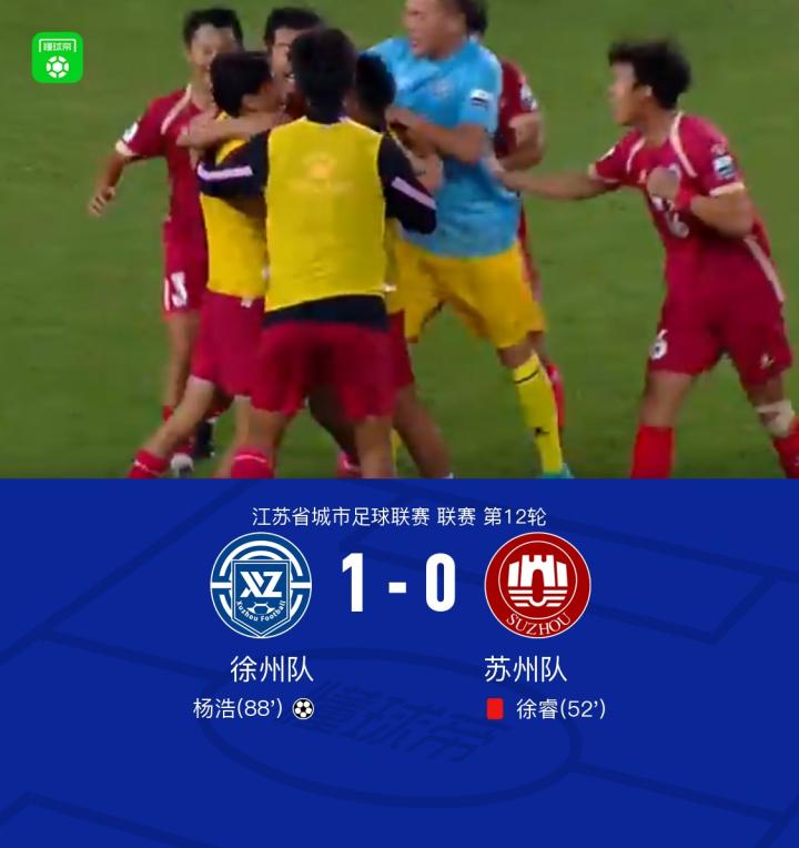 徐州队1-0绝杀十人苏州队,杨浩头槌得分,徐睿染红