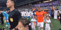 双方球员步入球场,齐鲁德比即将打响
