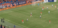 第90+1分钟,刘洋任意球攻门,韩镕泽救险