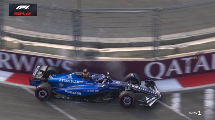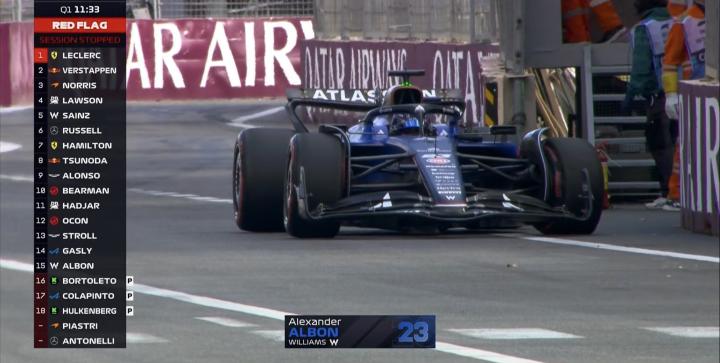 红旗!阿尔本在1号弯左前轮蹭墙,赛车前悬挂受损&左前胎爆胎,他的排位赛戛然而止!