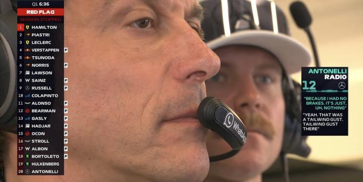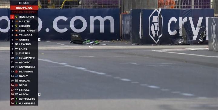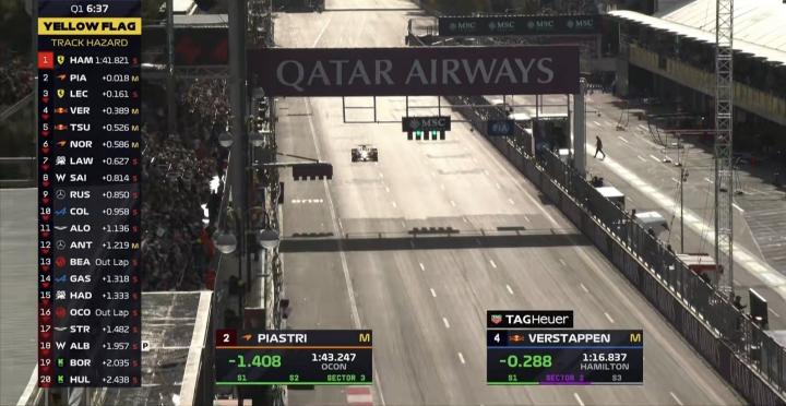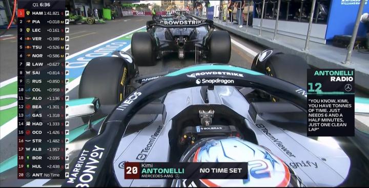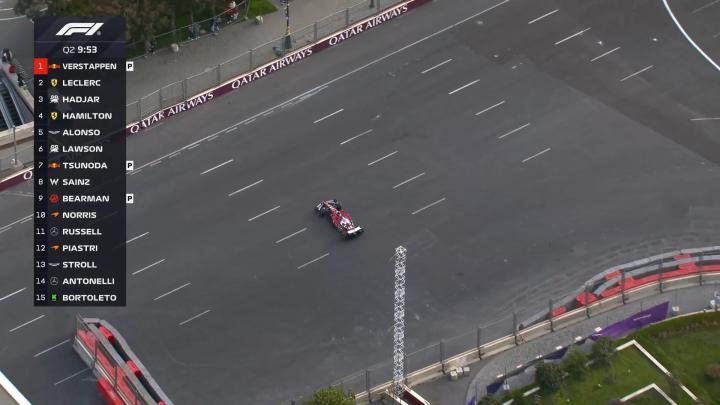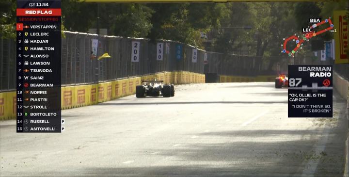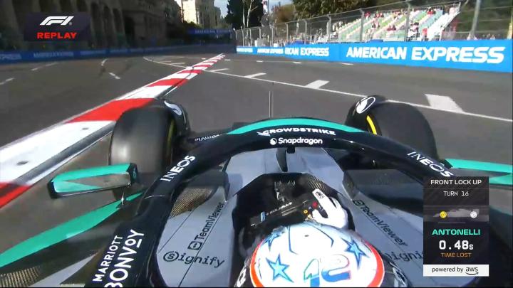 安东内利的在16号弯丢失刹车导致四轮冲出赛道,他的上一个单圈成绩被删除,目前仍没有有效成绩;
