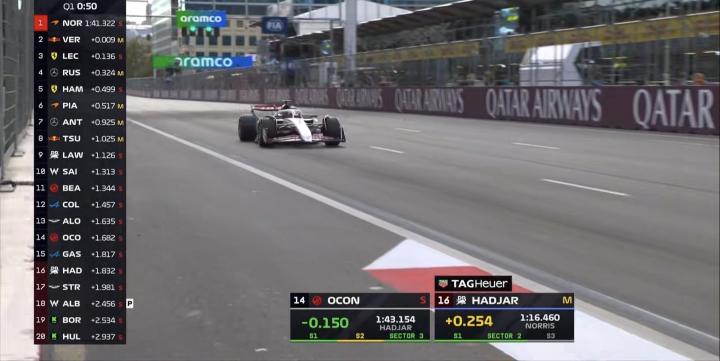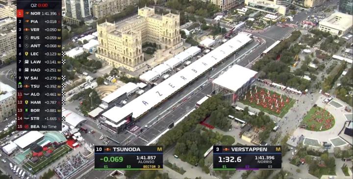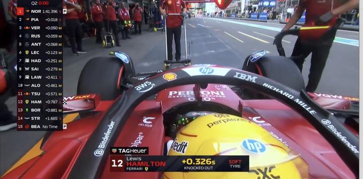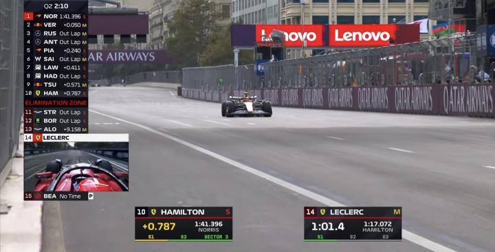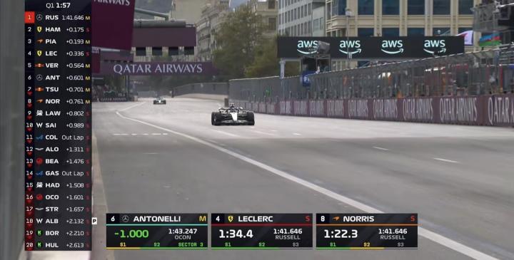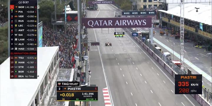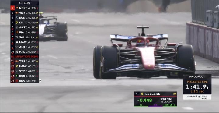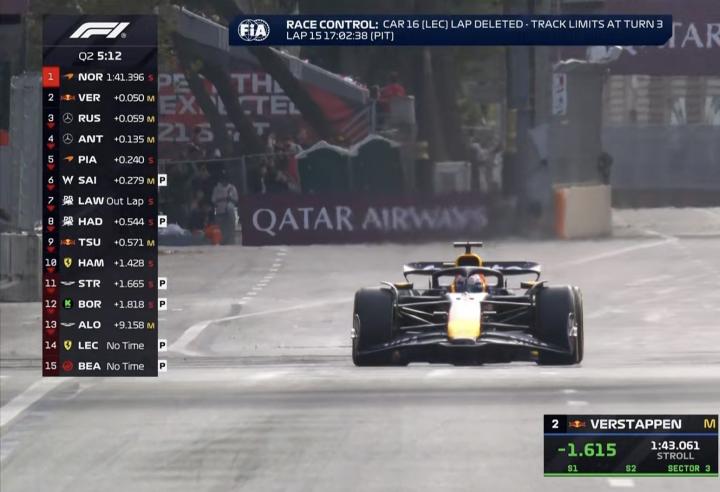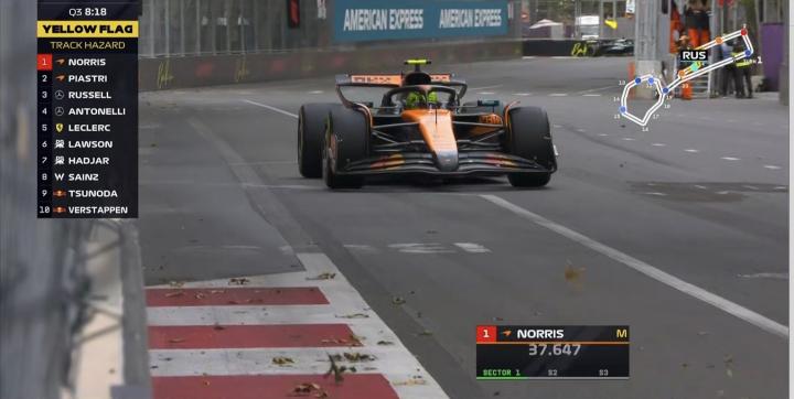Q2首轮飞驰圈结束,诺里斯暂居榜首,勒克莱尔的上一圈成绩被删除;