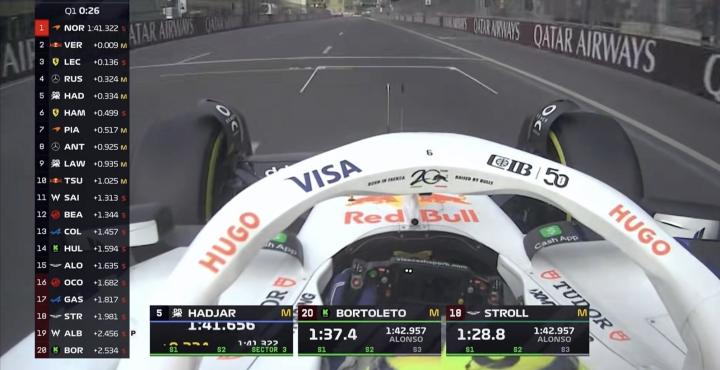 两台红牛先后过线,角田绝杀阿隆索上到第10,惊险晋级Q3!