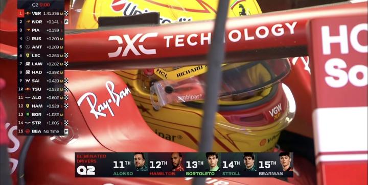 Q2被淘汰车手:阿隆索、汉密尔顿、博托莱托、斯特罗尔、贝尔曼
