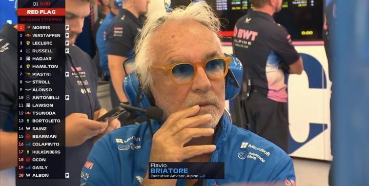 镜头给到布里亚托利,他的两位车手均在Q1出局,同时出现车损;