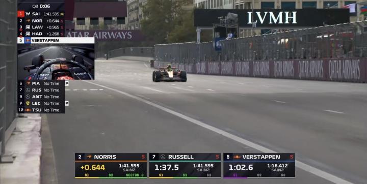 6次红旗!F1阿塞拜疆站排位赛:维斯塔潘杆位,塞恩斯P2,劳森P3