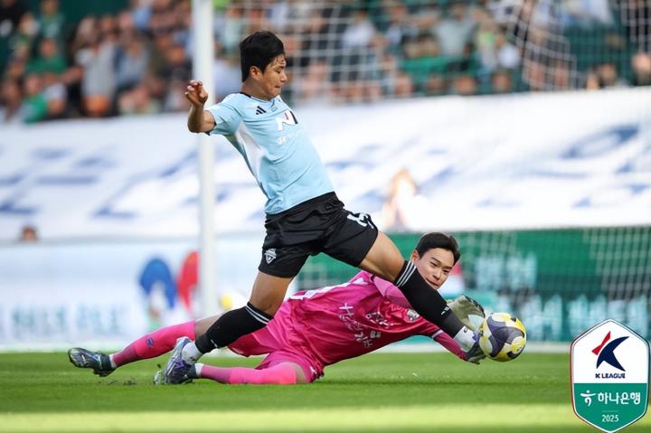 而失球之后的全北显得慌乱,在伤停补时阶段,全北被对手利用角球破门,这次破门的是朴相爀。这位江原中锋用个人的赛季第10球,帮助球队在半场结束前取得了2-0的领先。本赛季前两次交手,金泉尚武都是1-2落败,这个比分,似乎让他们看到了胜利的可能。
