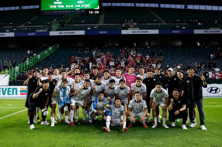在没有100%胜利前,千万不要提前开香槟!今天全北现代汽车就因为自己的轻狂付出了代价。9月20日下午结束的2025赛季K1联赛第30轮比赛中,他们在全州世界杯竞技场面对联赛第二名金泉尚武,意外以1-2失利,无缘提前庆祝夺冠。而金泉尚武,也终于兑现了自己赛前的承诺“把全北在主场拉下马”!