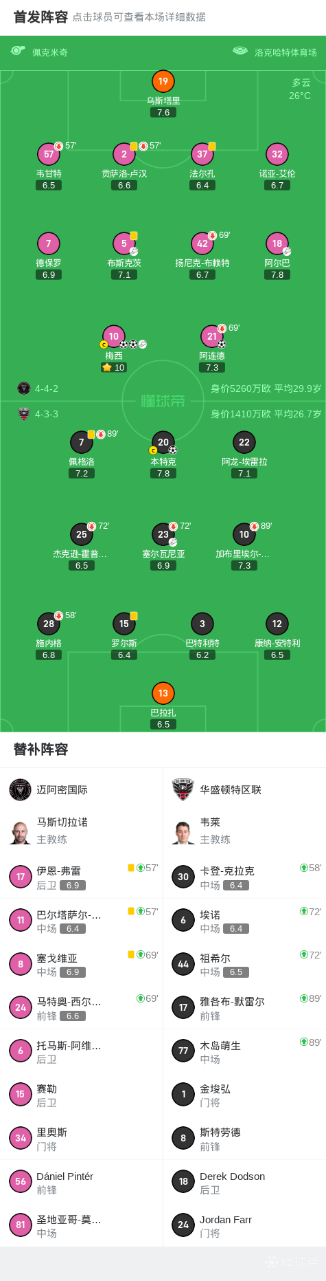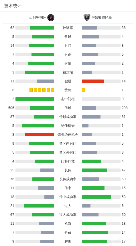 第52分钟,塞尔瓦尼亚传中,本特克头球破门扳平比分,华盛顿1-1迈阿密