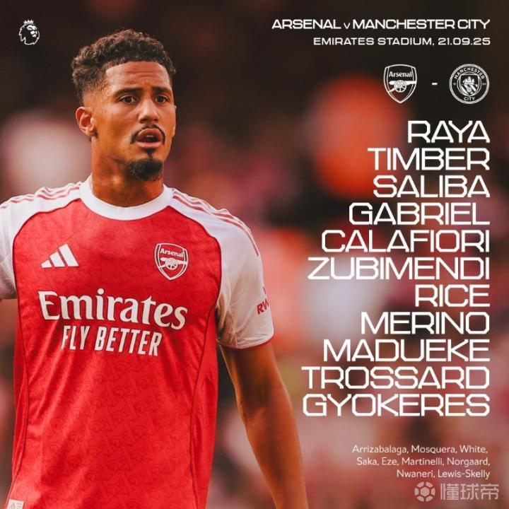 北京时间9月21日23:30,英超第5轮焦点战,阿森纳坐镇酋长球场迎战曼城,本场主裁判为阿特维尔,赛前双方首发出炉。