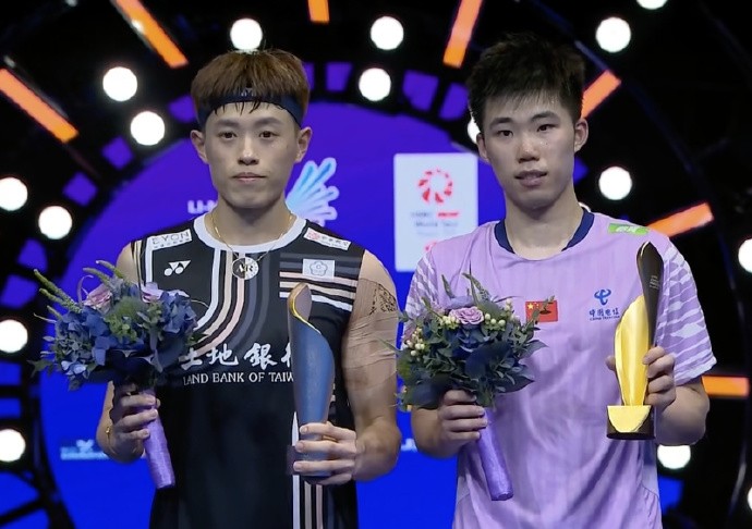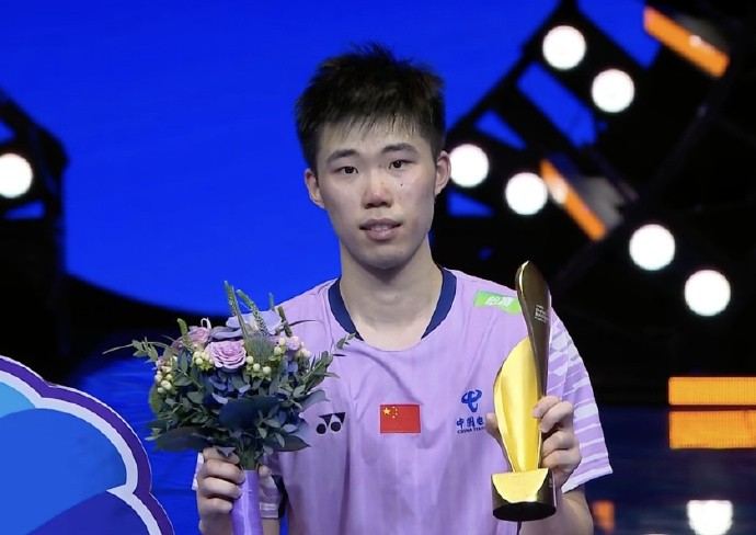 翁泓阳2-0战胜林俊易,获得中国羽毛球大师赛男单冠军