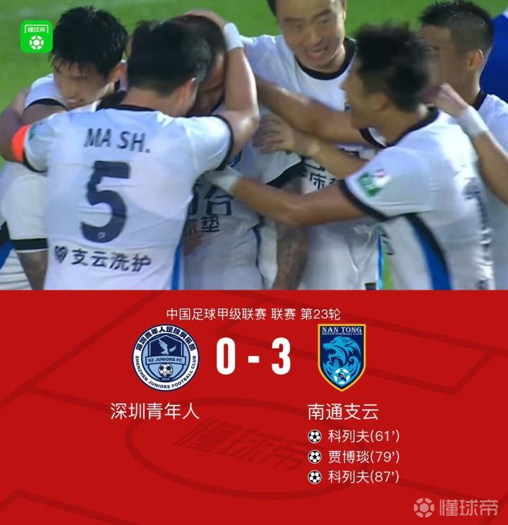 南通支云客场3-0深圳青年人迎四连胜,科列夫双响,贾博琰建功