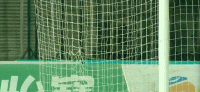 第46分钟,球网出现孔洞,工作人员修补后继续比赛