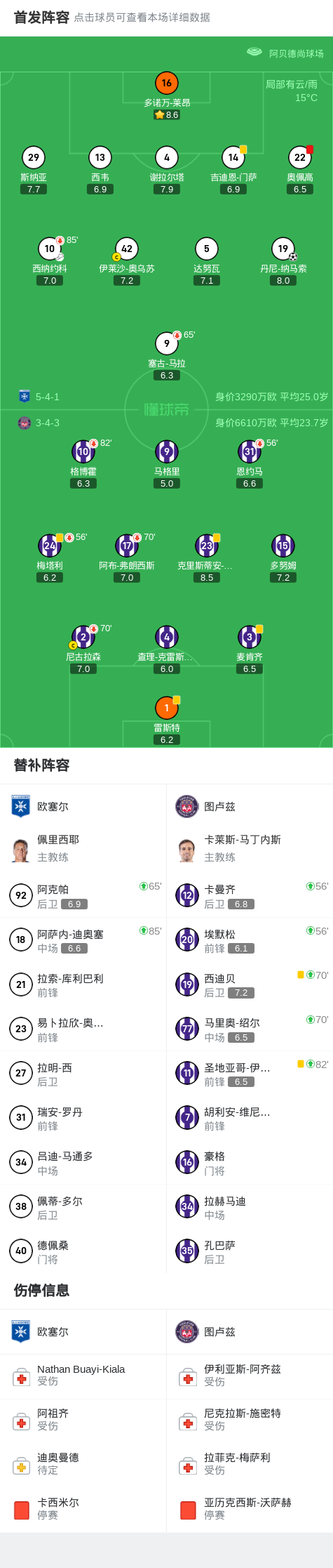 第64分钟,欧塞尔球队奥佩高吃到红牌。