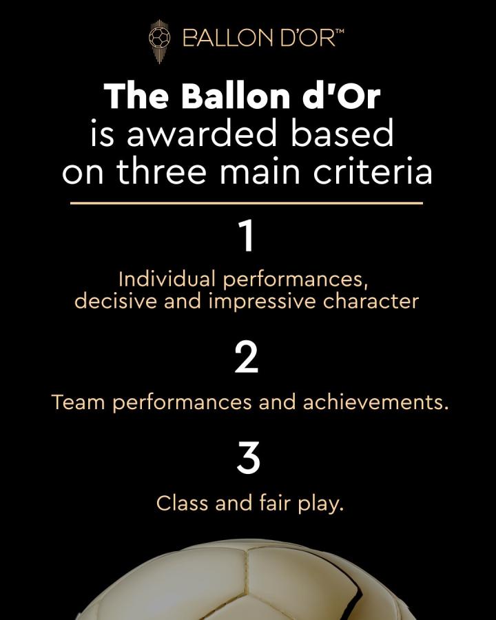 金球奖官方明确规定,金球奖评选明确参照三个标准:个人竞技表现与比赛决定性作用,团队的荣誉和成就,竞技风度与公平竞赛精神。