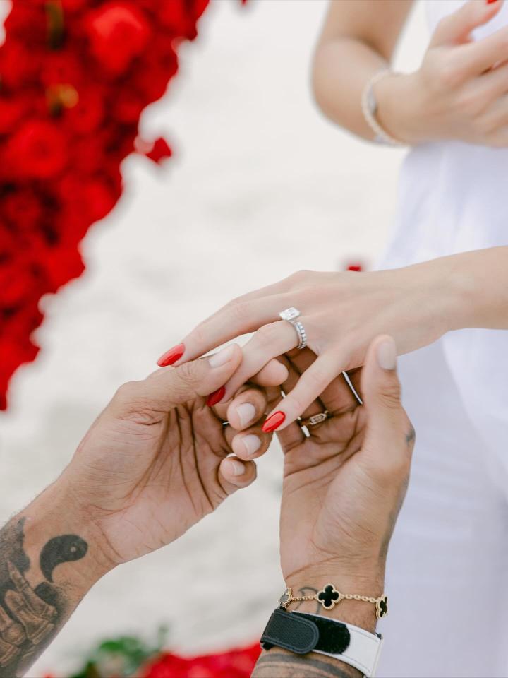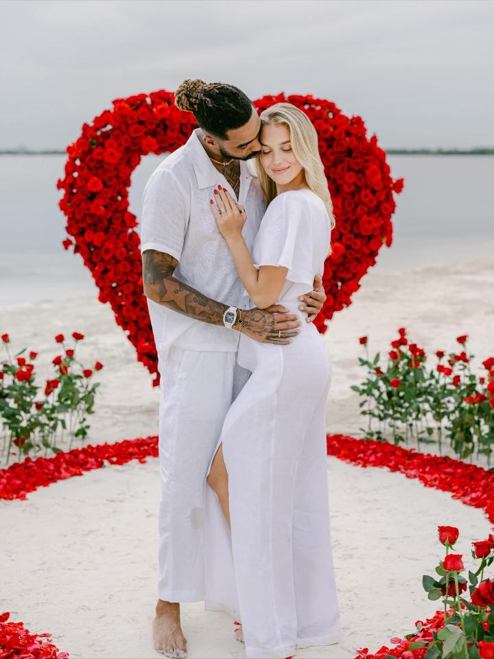 劳拉表示:从Ms(未婚女生)变成Mrs(已婚女士),并分享了多张求婚仪式的照片,通过照片可以看出,求婚现场在一个海边的沙滩,现场铺了许多玫瑰花,还有绚丽烟火加以点缀,两人亲密相拥,钻戒十分醒目,两人的两名孩子也在场见证。