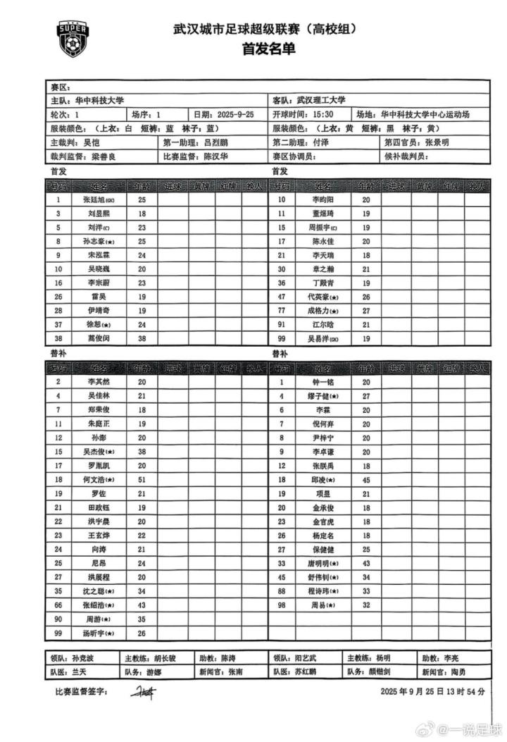 北京时间9月25日,“汉超”高校组第一轮,华中科技大学对阵武汉理工大学,前国脚蒿俊闵代表华中科技大学首发出场。