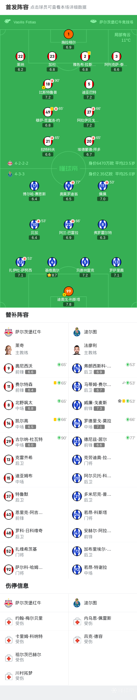 北京时间9月26日欧足联欧洲联赛 联赛阶段 第1轮,萨尔茨堡红牛对阵波尔图。波尔图威廉-戈麦斯破门。最终比分萨尔茨堡红牛 0-1 波尔图。