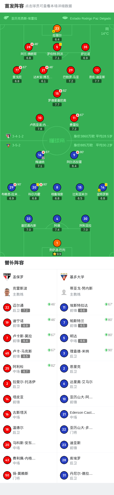 基多大学1-0圣保罗,梅迪纳一锤定音