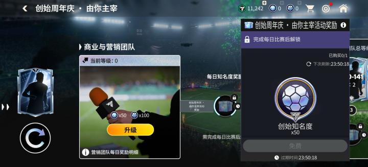 参与每日比赛,可以获得创始资金;提升训练与运动表现团队等级,可以解锁专属球员交换;提升商业与营销团队等级,可以解锁领取创始知名度。使用创始资金、创始知名度可以继续提升团队等级。