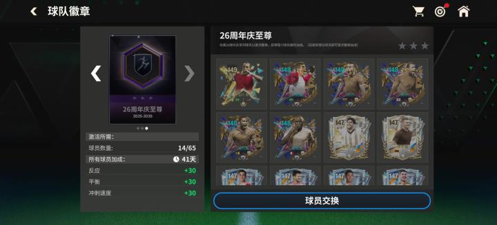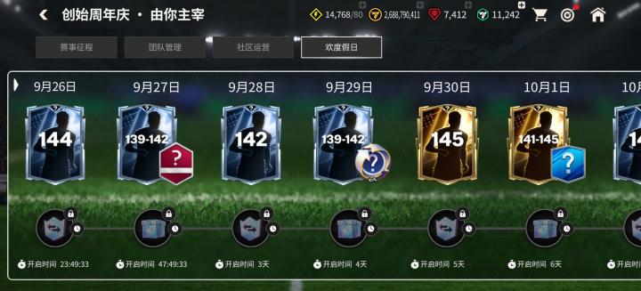 9月26日开始,玩家还可以解锁每日登录奖励,不仅有高能力值混合球员卡,还有143、144、145能力值混合球员的特惠交换。