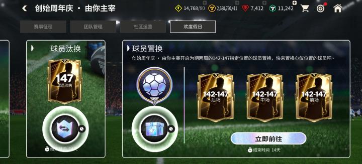 欢度假日章节中,玩家可以领取每日登录奖励,同时还能参与147球员汰换,领取球员置换币。