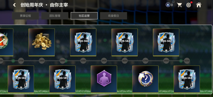 当玩家创始热度达到一定数量,可以解锁里程碑奖励。奖励中不仅包含大师强化材料、高级转移点券等游戏道具奖励,还有总计14名139-142能力值创始周年庆球员卡奖励。当玩家累计获得4200创始热度后,可以解锁领取全部奖励。
