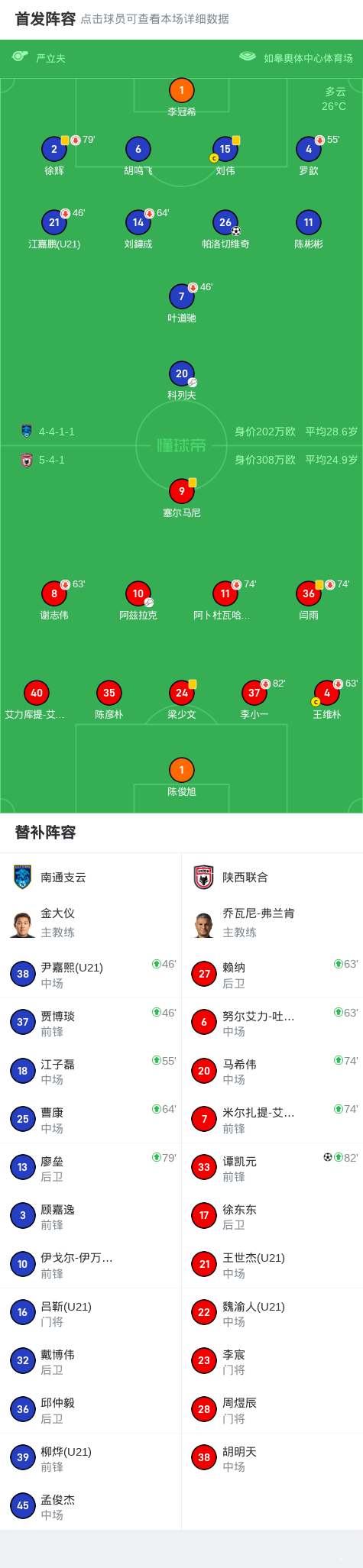 北京时间9月26日,2023赛季中国足球甲级联赛第24轮展开较量,南通支云坐镇主场迎战陕西联合。比赛中,科列夫送出精准助攻,帮助帕洛切维奇破门得分,为主队取得领先。随后,阿兹拉克为谭凯元创造良机,谭凯元冷静施射建功,将比分扳平。双方攻防有序,均未能再度改写比分,最终以1比1握手言和。
