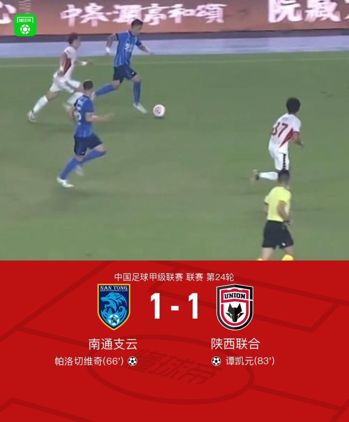 南通支云1-1陕西联合,帕洛切维奇破门,谭凯元扳平