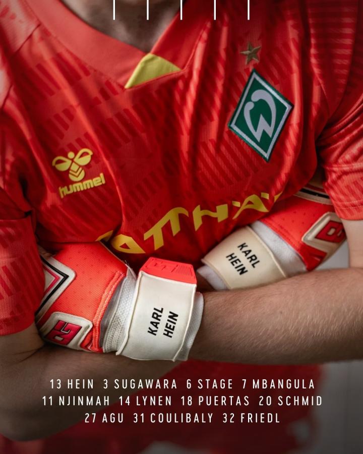 不莱梅首发:13-卡尔-海因、3-菅原由势、31-卡里姆-库利巴利、32-马尔科-弗里德尔、27-阿古、14-吕嫩、18-普埃尔塔斯、20-施密德、6-斯特奇、7-姆班古拉、11-恩金马