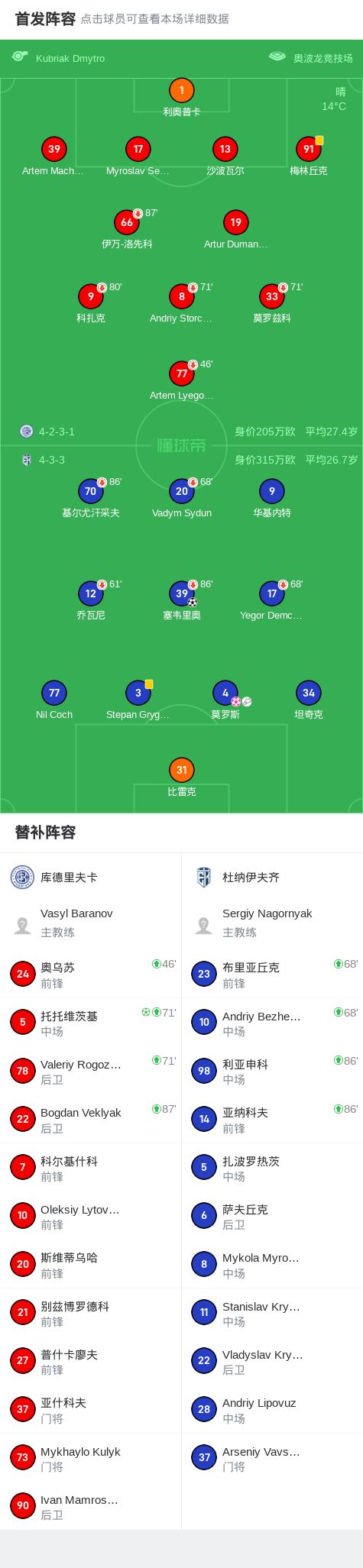 库德里夫卡2-1逆转杜纳伊夫齐,托托维茨基点射